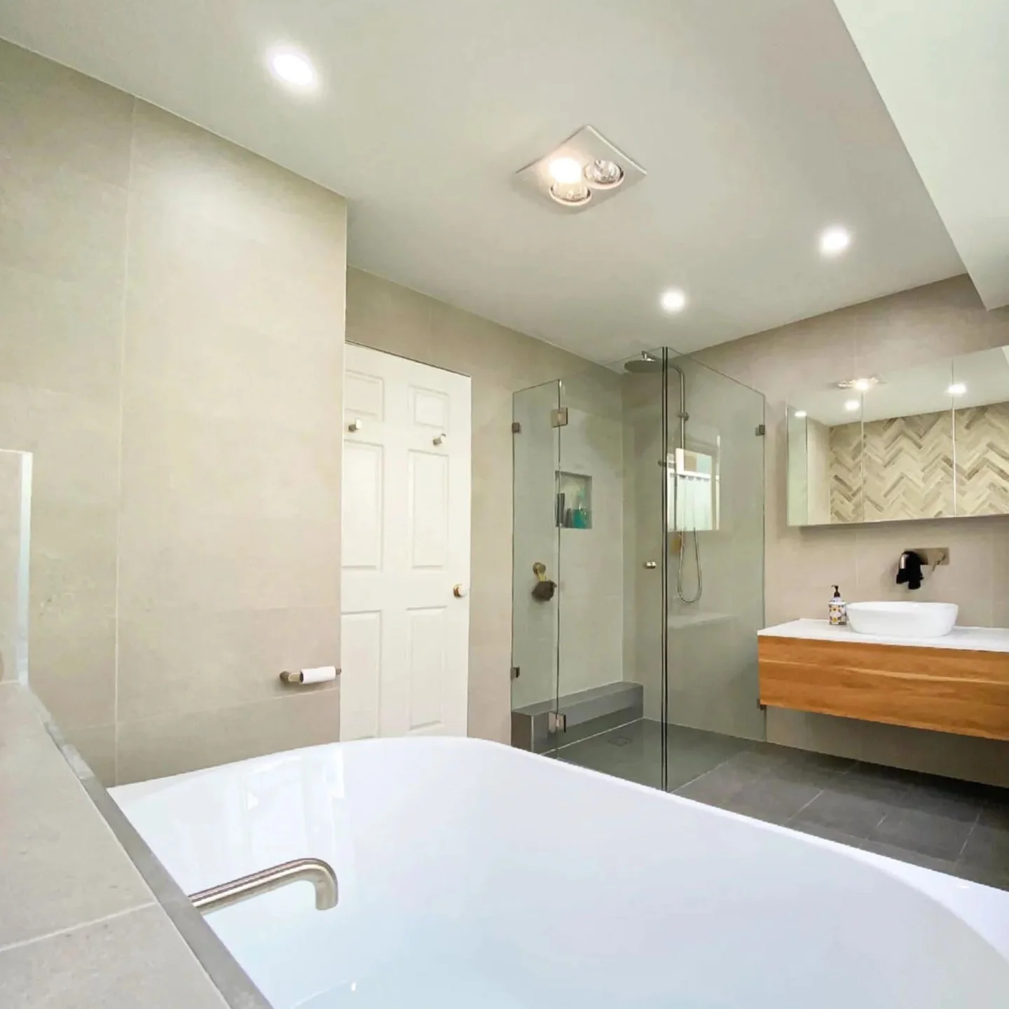 Frameless showers introduced openness while maintaining strong water containment and ease of cleaning. Easy to use mixers supported comfort, accessibility, and reliable daily performance. Moreover, precise installation ensured alignment, durability, and a premium finish across all elements. Lighting and spatial balance worked together to enhance mood and usability. As a result, the completed bathroom delivered confidence, comfort, and lasting visual appeal. This structured outcome reflects renovation systems supported by RJG Group through consistent project coordination.